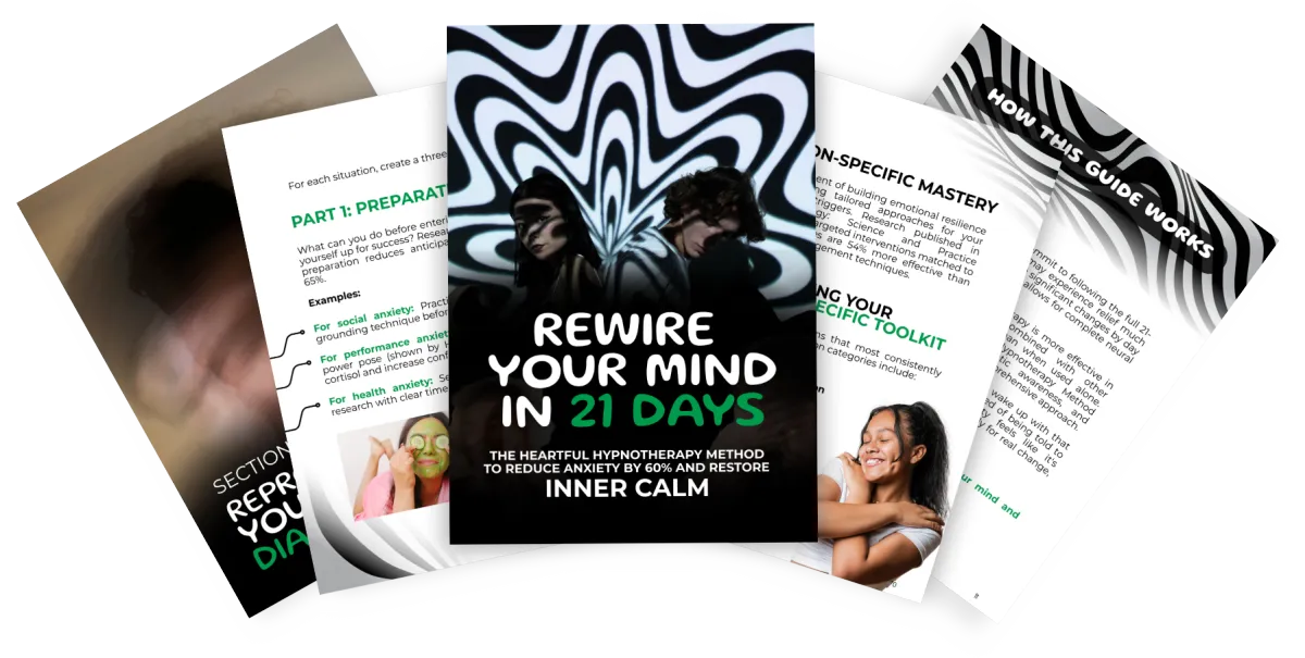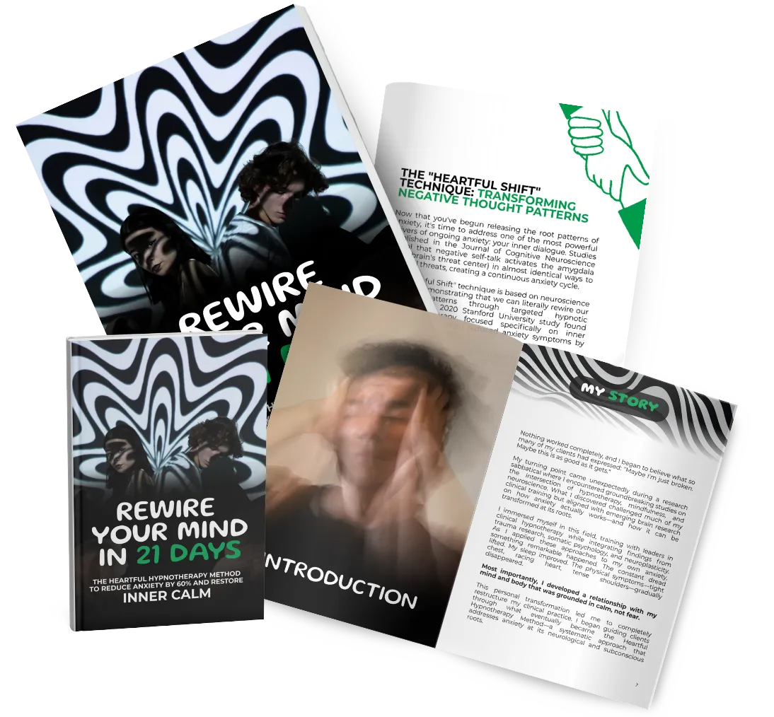 The complete Heartful Hypnotherapy Method that walks you through the entire 21-day program, covering the Root Release Process, Inner Dialogue Reprogramming, Emotional Resilience Building, and Long-Term Integration. This also includes the Anxiety Origin Assessment to help identify your specific anxiety patterns.